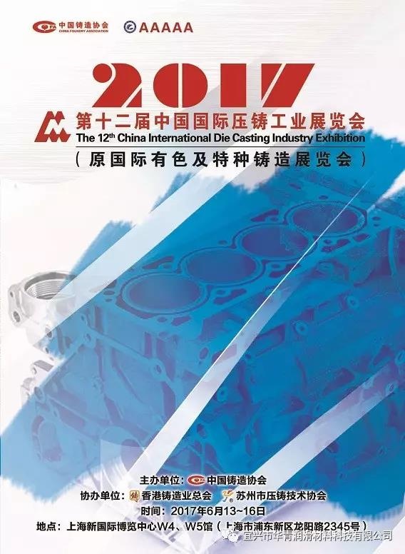 2017年6月13-16日,第十二屆中國(guó)國(guó)際壓鑄工業(yè)展覽會(huì),我公司將攜帶旗下主要產(chǎn)品參加展出,屆時(shí)歡迎各位觀眾前來(lái)參觀,我司展位號(hào):w4-243